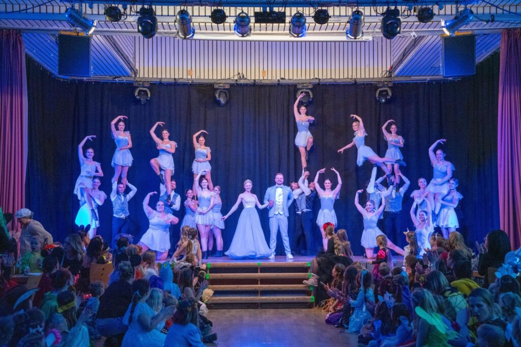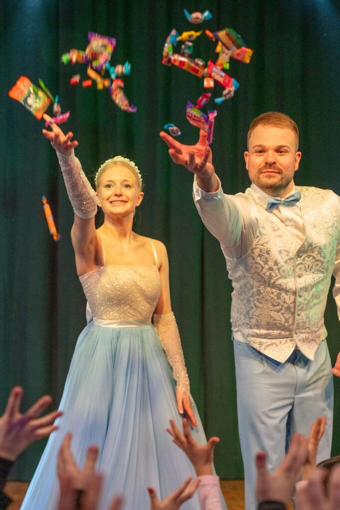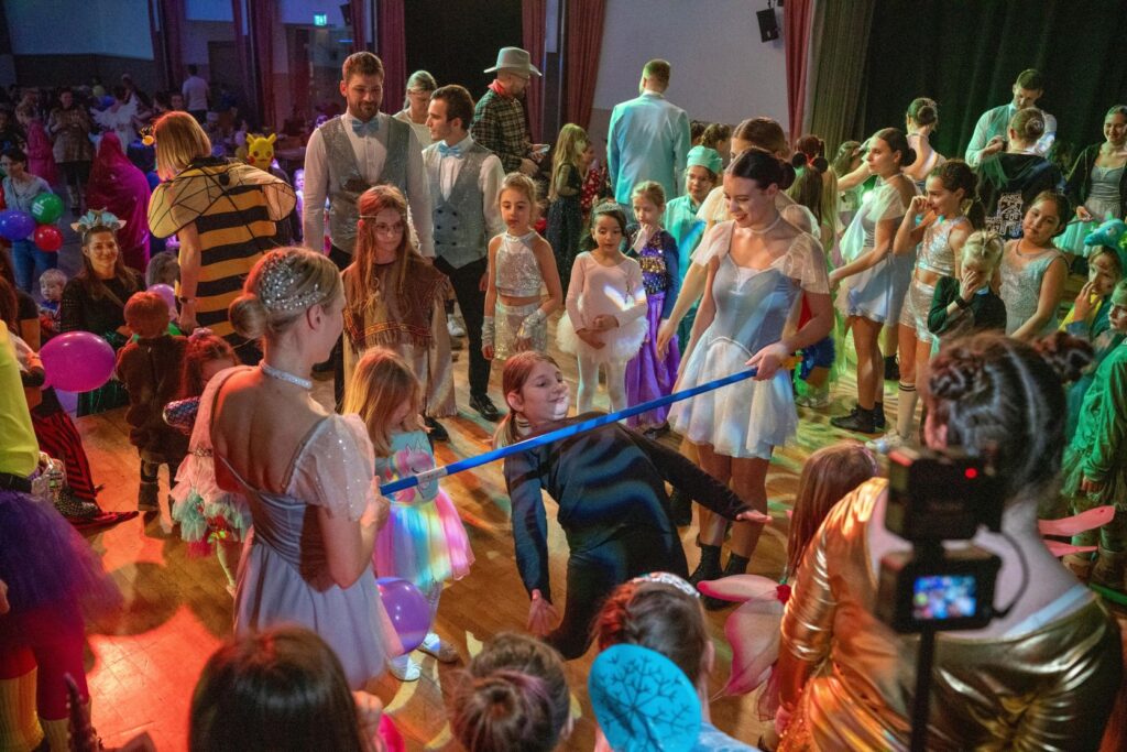 Doch das Programm bot noch einiges mehr: eine lange Polonaise mit unserem Prinzen Markus I., Limbo unter der Stange, eine rasante Bobfahrt und unzählige bunte Luftballons. Zum Abschluss regnete es noch viele Süßigkeiten, bevor Paulchen Panther mit „Wer hat an der Uhr gedreht?“ die kleinen Faschingsfans verabschiedete.
